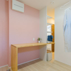 ワークスペースとしてカウンターを設けましたが、将来的にはお仏壇を置くスペースとして活用できます。