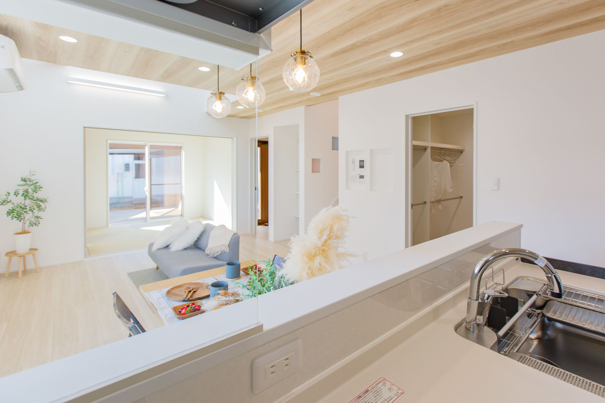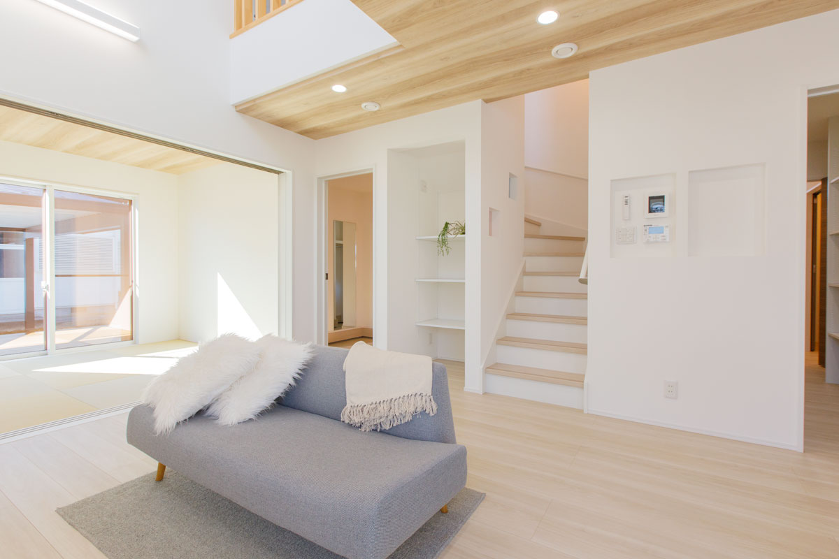 和室は引き戸を開けると、リビングとの繋がりが生まれ開放的にも使用できます。