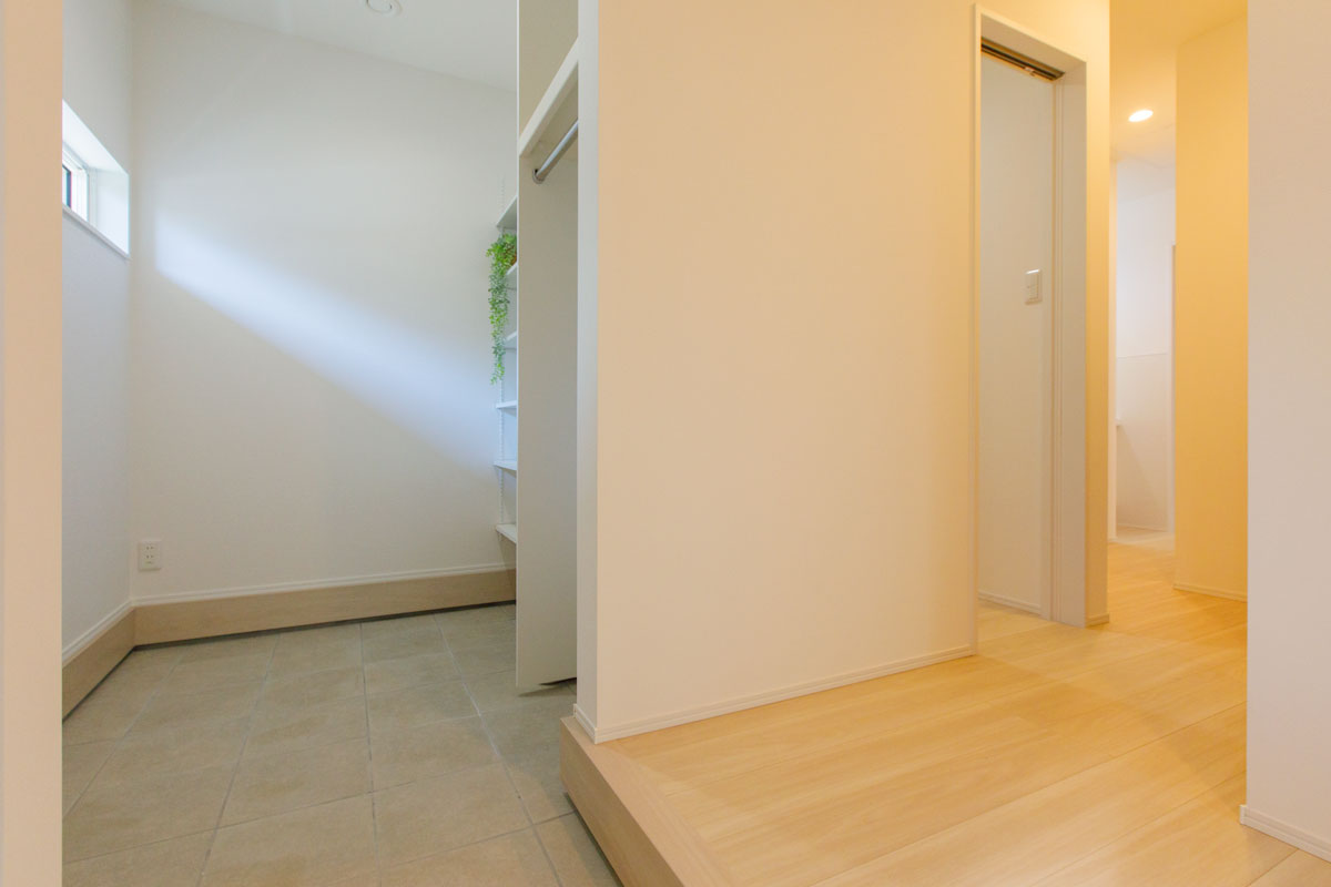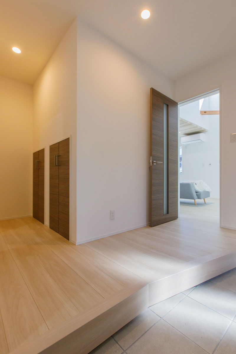 玄関SICには趣味の釣り具収納や、釣り用の冷凍庫も置けるように計画しました。