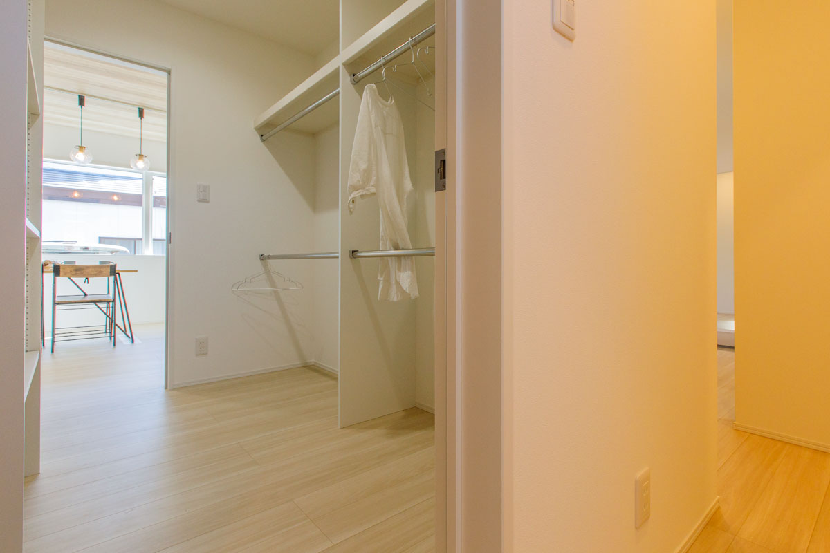 ファミリークローゼットを中心に、ぐるっと回遊できる導線になっています。