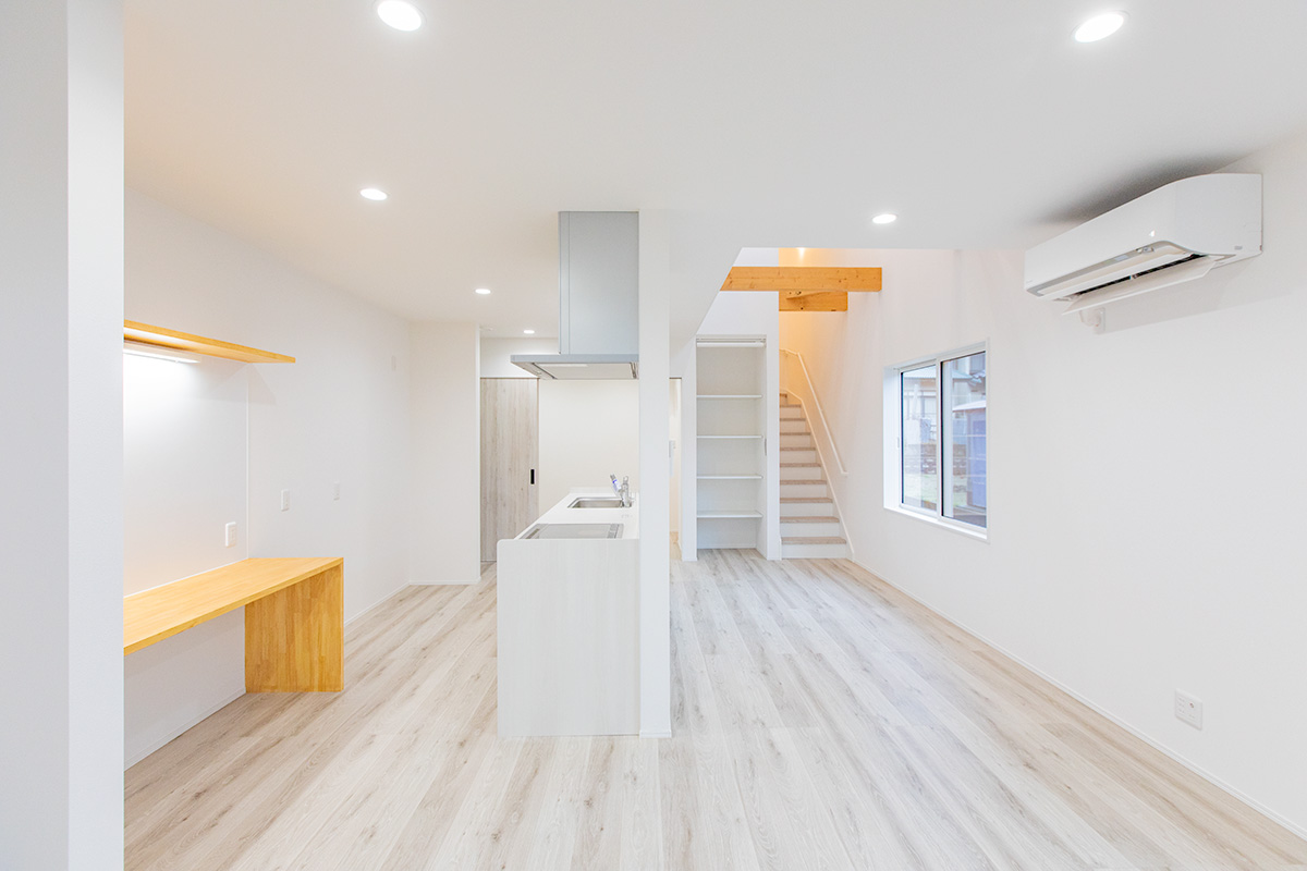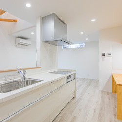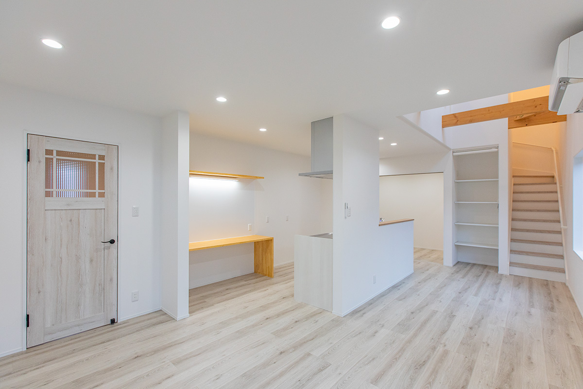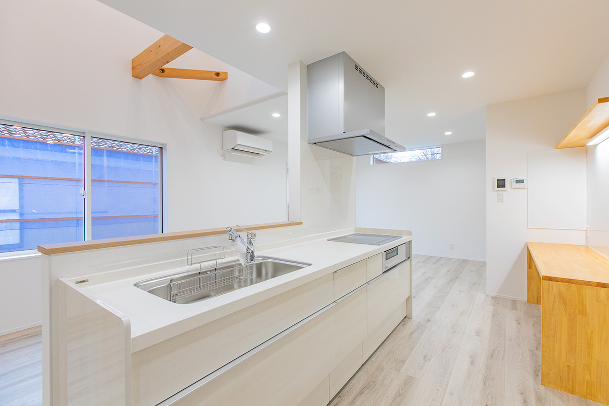 キッチン背面には、造作のワークスペースを設置。