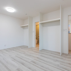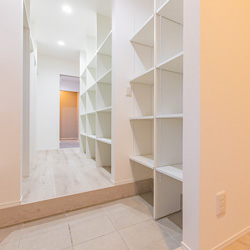 ファミリークローゼットは、帰宅後すぐに荷物や上着をしまえる「家族ロッカー」のような使い方ができ、リビングが散らかりにくくなります。