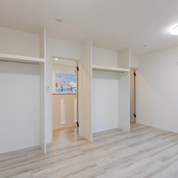 乾いた洗濯物は、隣接するファミリークローゼットへそのまま収納できる家事ラク動線です。