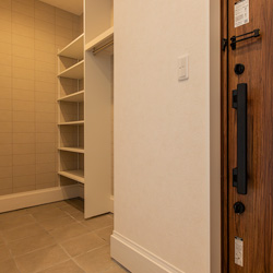 LDKに持ち込まない動線設計をいたしました。