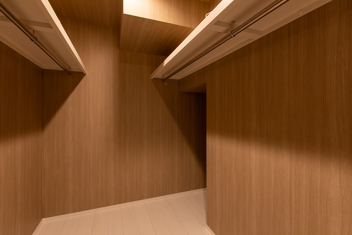 1階には家族で使えるウォークインクローゼットを設置。帰宅後すぐに上着や荷物をしまえる動線で、室内はいつもすっきり。